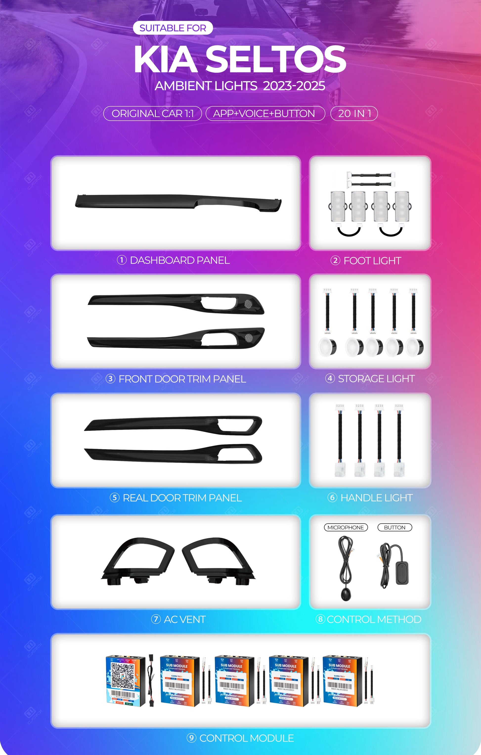 Cardi 20-in-1 Ambient Light Kit for Kia Seltos – Full Interior LED Upgrade